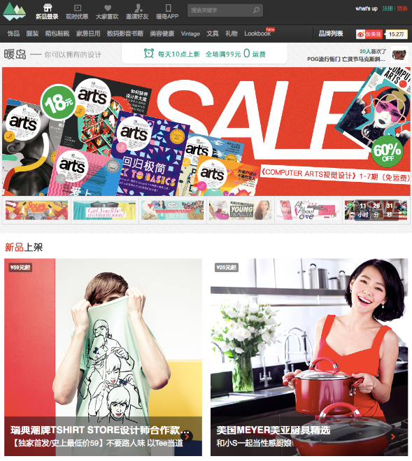 由于暖島網定位人群并不廣泛,很多人可能不知道暖島網。不過憑借精準的品牌定位,以及頗具“刺激性”的購物規則,使得暖島網在不到 2 年時間籠絡了 40 萬用戶,商品覆蓋了一萬多個品類,近千家設計師品牌。打開暖島網首頁,不是傳統電商那種密集的導航文字,而是瀑布流的大圖展示效果。這種設計借鑒自 Fab 等網站,可以迅速展現出商品的賣點,讓商品特性一目了然。