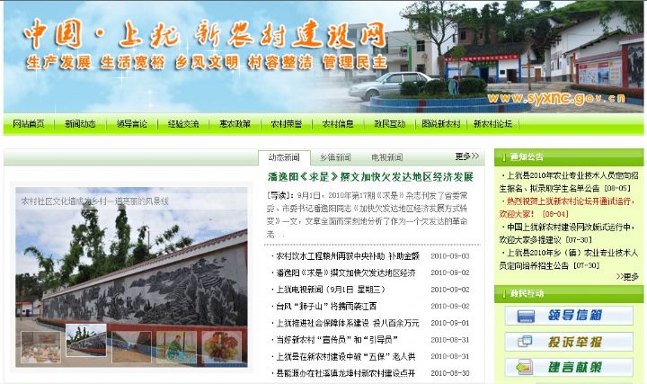 中國·上猶新農村建設網(www.syxnc.gov.cn)在上猶縣新農村建設工作領導小組辦公室和我司的積極配合下進行了改版。新版如下: