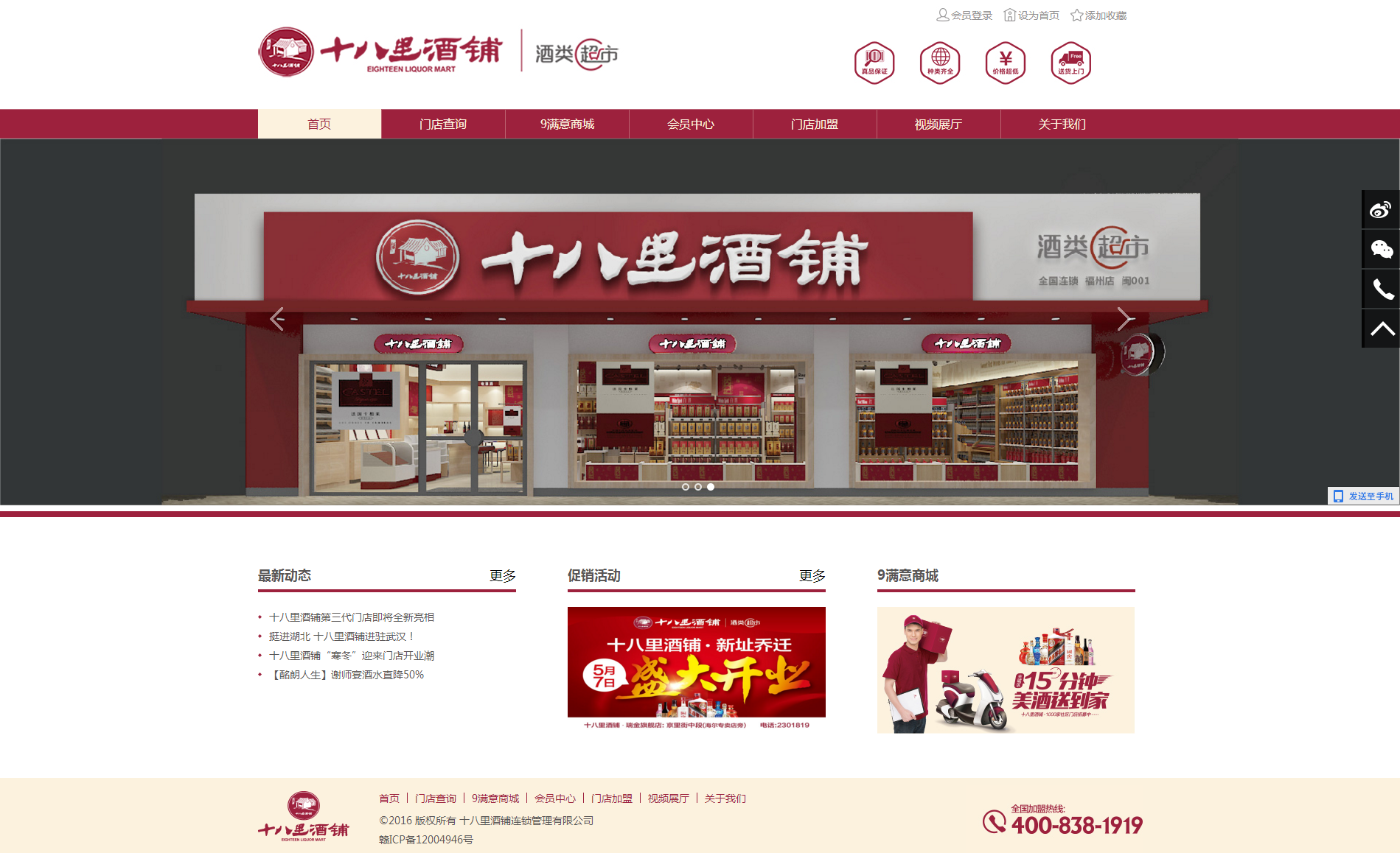 2016年4月29日,浩網科技為客戶十八里酒鋪量身打造的全新網站順利交付上線! http://www.mj18.cn/